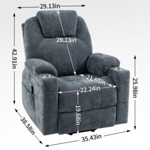 Blue Power Lift Recliner Chair with Massage, Heat, USB-C, Cup Holders – 350 lbs Heavy Duty Chenille Recliner